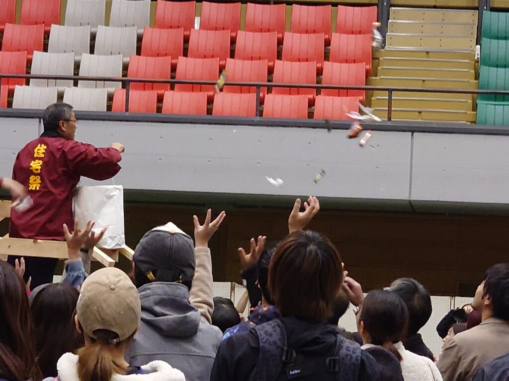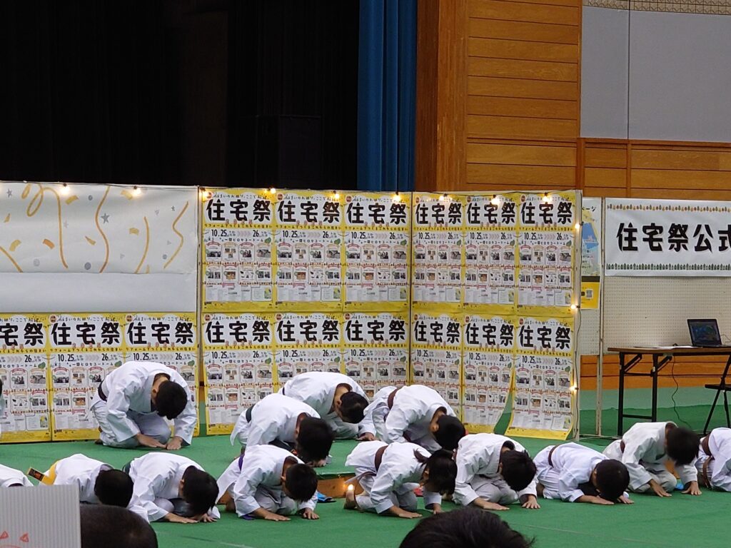 会場内で様々なイベントが開催されており、上棟式や餅まき、木製のジャングルジムの制作や空手の演舞で会場が盛り上がりました。
